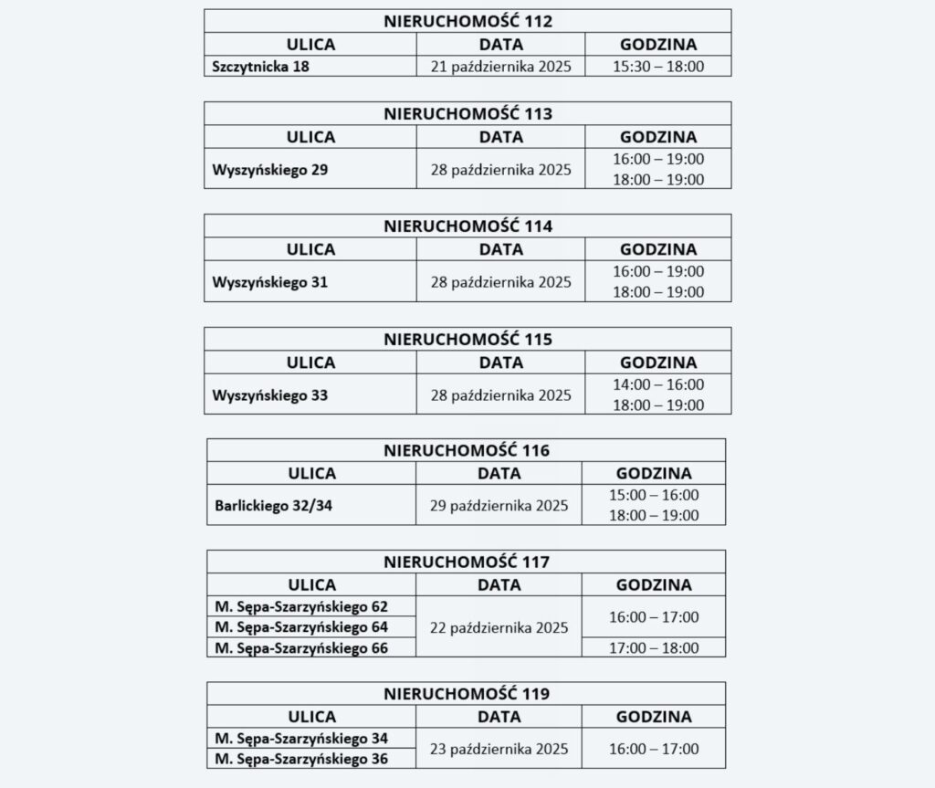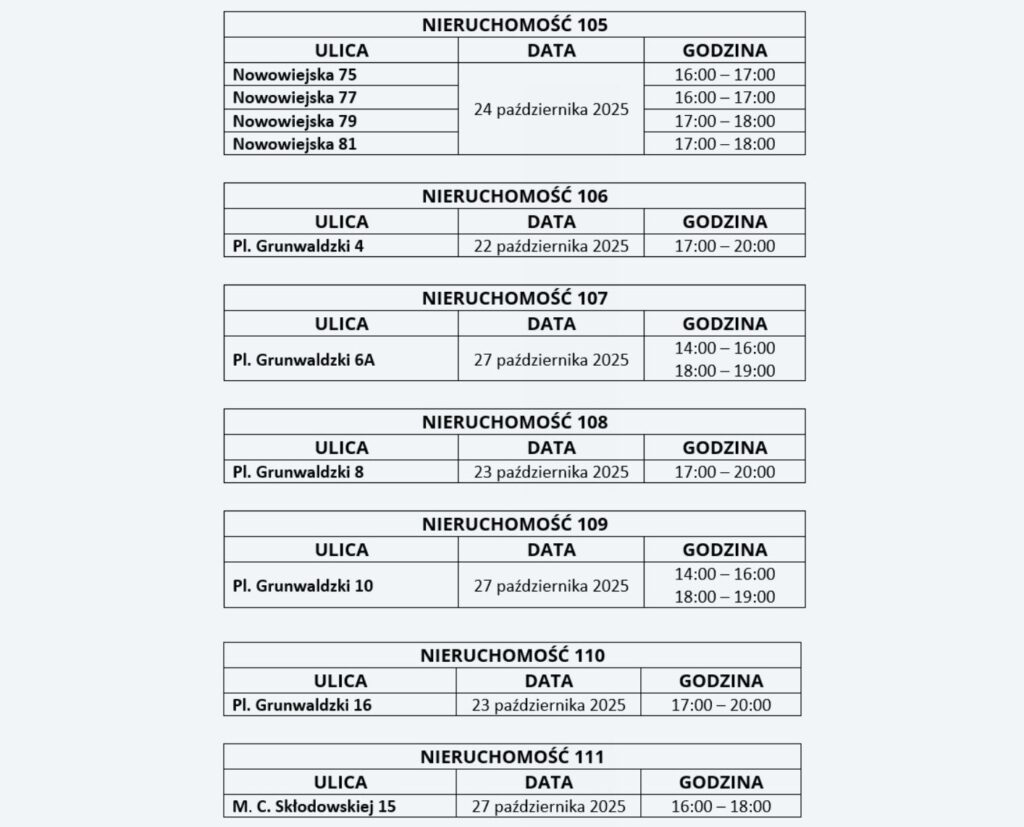 Przeglądy zostaną przeprowadzone zgodnie z obowiązującymi przepisami i mają na celu zapewnienie bezpieczeństwa mieszkańców.