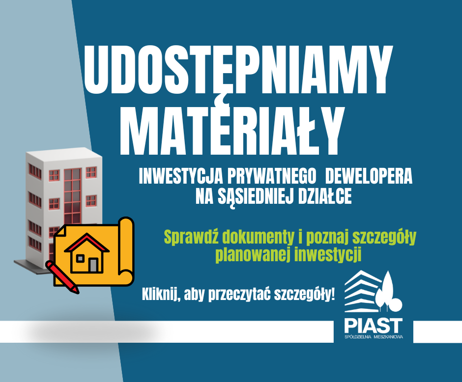 Na prośbę mieszkańców Spółdzielnia publikuje dokumentację przekazaną przez dewelopera, dostępną w załącznikach poniżej.