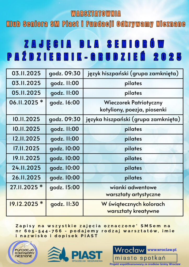 Z radością informujemy, że rusza także program zajęć kulturalno-oświatowych przygotowany specjalnie dla Was! Projekt jest realizowany przez Fundacja „Odkrywamy Nieznane” i dofinansowany ze środków Gminy Wrocław.