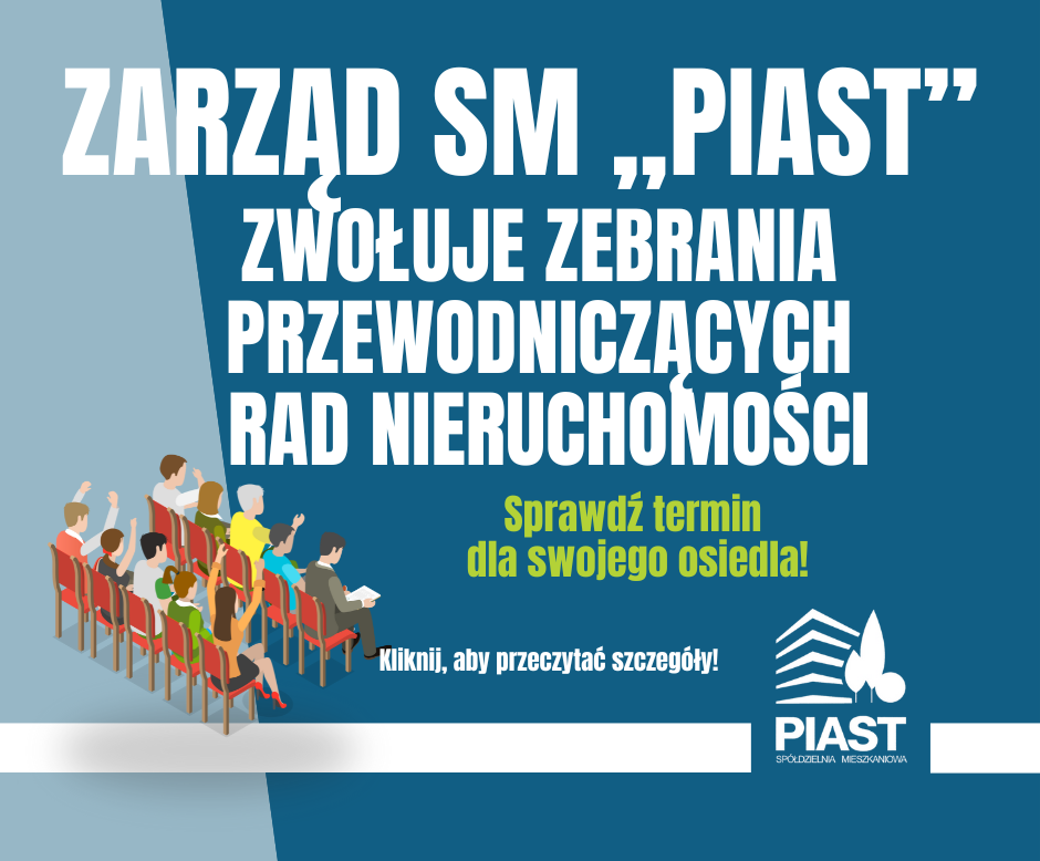 Zgodnie z §7 ust. 2 pkt 1 Regulaminu Rad Nieruchomości, Zarząd SM „Piast” zwołuje zebrania przewodniczących rad nieruchomości. Spotkania mają na celu omówienie bieżących spraw spółdzielni, wymianę doświadczeń między radami oraz wspólne planowanie działań lokalnych, które mają wpływ na życie mieszkańców.