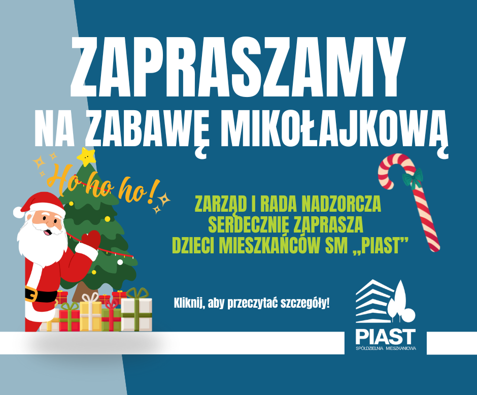 Zarząd i Rada Nadzorcza serdecznie zapraszają wszystkie dzieci mieszkańców SM „Piast” wraz z opiekunami na mikołajkowe szaleństwo!