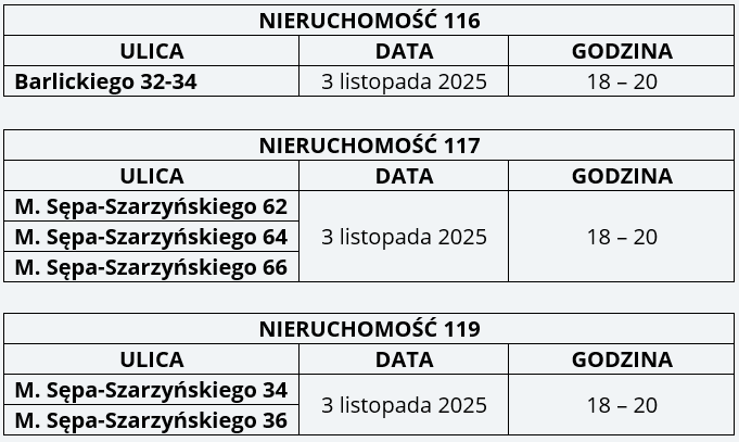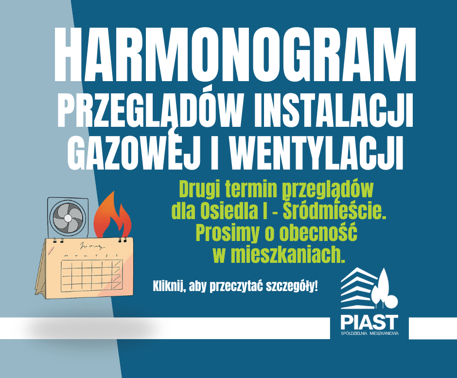 Prosimy o obecność w mieszkaniach w podanym terminie – jest to obowiązkowy przegląd wynikający z przepisów prawa i ma na celu zapewnienie bezpieczeństwa mieszkańców.