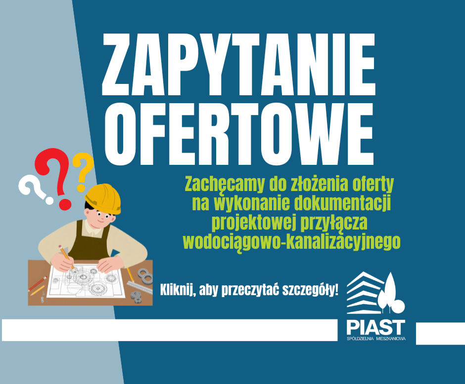 Spółdzielnia Mieszkaniowa „Piast” zaprasza do składania ofert na wykonanie dokumentacji projektowej przyłącza wodociągowego dla budynku przy ul. Bulwar Ikara 24–30 we Wrocławiu.