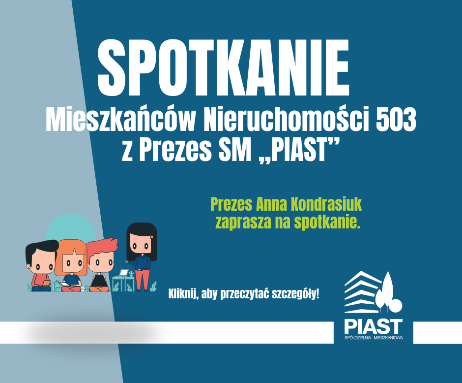 Serdecznie zapraszam wszystkich mieszkańców Nieruchomości 503, mieszczącej się przy ul. Bajana 4 – 12 oraz Szybowcowa 46 – 60, na spotkanie poświęcone sprawom Państwa nieruchomości.