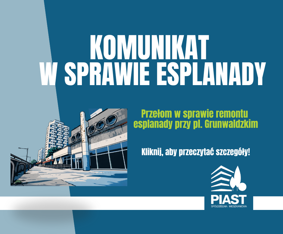 poniżej przedstawiam informacje o kluczowych rozstrzygnięciach prawnych i finansowych dotyczących remontu esplanady w obrębie nieruchomości przy pl. Grunwaldzkim 12-20.