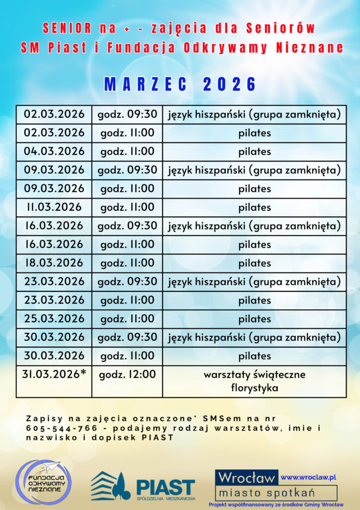 Zajęcia odbywać się będą w Klubie „u Piasta”, ul. Benedyktyńska 15.