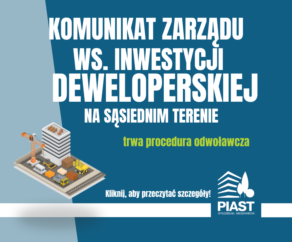 Zwracam się z prośbą o przesyłanie ewentualnych uwag dotyczących tej inwestycji na adres: sekretariat@smpiast.com.pl do dnia 20 kwietnia 2026 r., co umożliwi nam przygotowanie stanowiska Spółdzielni przed upływem terminu wyznaczonego przez organ (21 kwietnia 2026 r.).