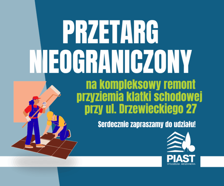 Spółdzielnia Mieszkaniowa “PIAST” ogłasza przetarg nieograniczony na wykonanie przeglądów specjalnych, sporządzenie dokumentacji z przeglądu dźwigów zainstalowanych w zasobach SM „Piast” – dotyczy dźwigów, których resurs został osiągnięty w 2024 roku (50 dźwigów).